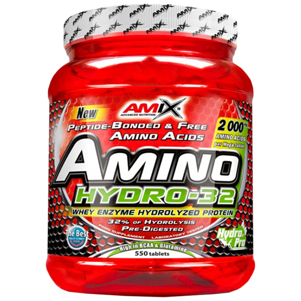 Amix Amino Hydro 32 е изключително силна аминокиселинна добавка в 2000 милиграмова таблетка хидролизиран (двойно преработен) суроватъчен протеин.