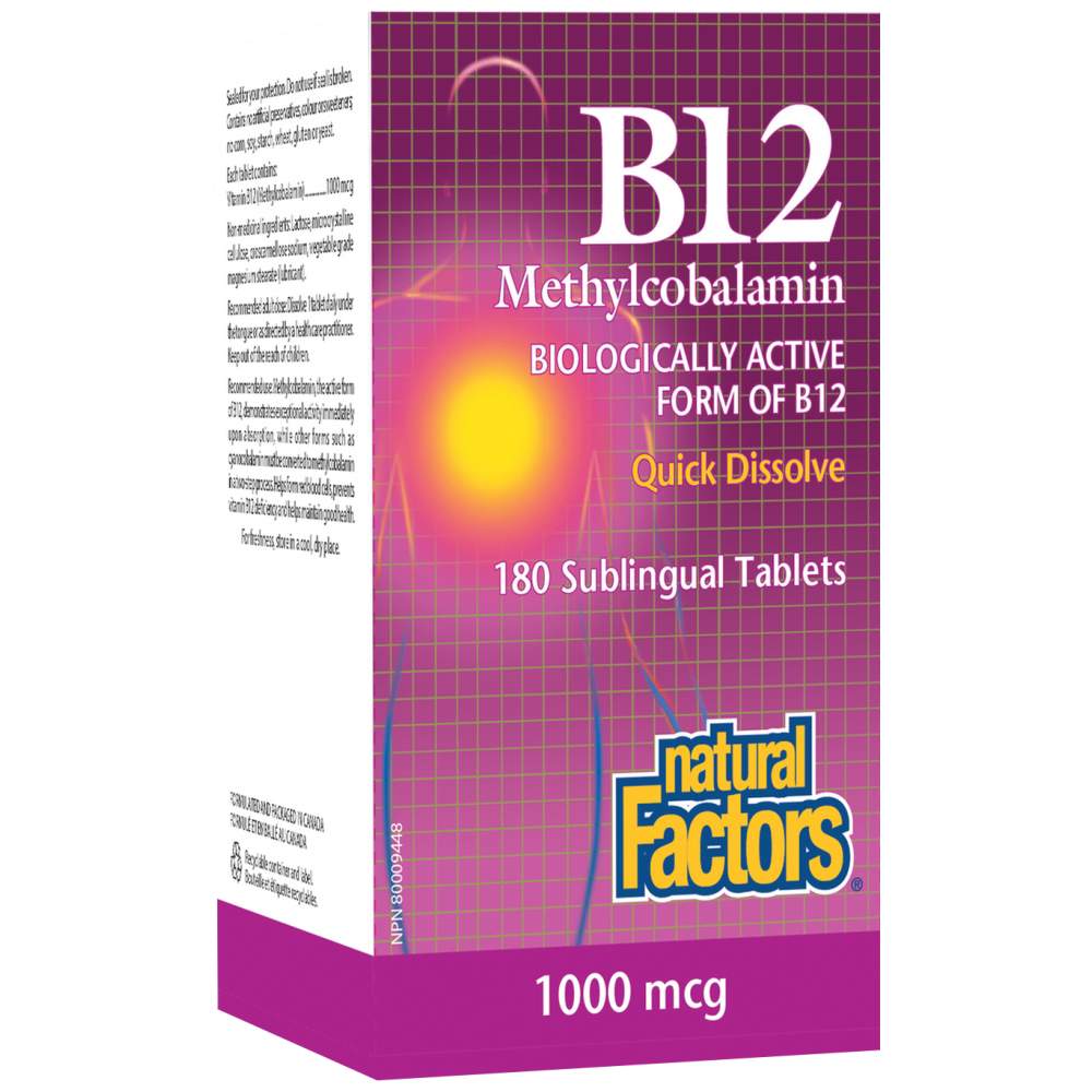 Natural Factors Витамин B12 Метилкобаламин 1000 мкг е висококачествена хранителна добавка, предназначена да подпомага енергийния метаболизъм, нервната система и образуването на червени кръвни клетки. Тази формула използва метилкобаламин – биологично активната форма на витамин B12, която се абсорбира и усвоява по-ефективно от организма. Продуктът се предлага под формата на лесни за приемане дъвчащи таблетки с приятен черешов вкус, което го прави удобен и приятен за ежедневна употреба.