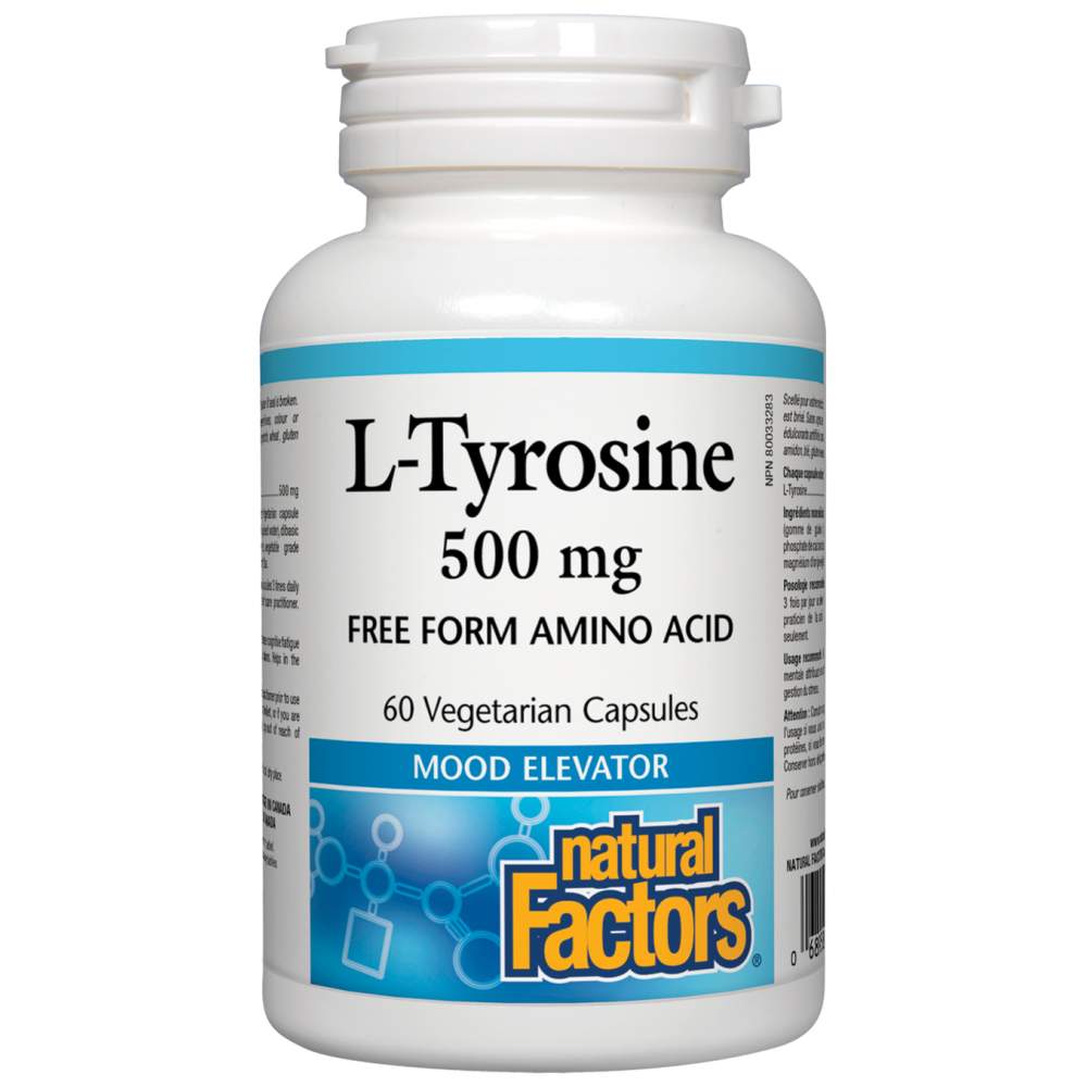 Natural Factors L-Tyrosine 500 mg е висококачествена хранителна добавка, предназначена да подпомогне когнитивната функция, настроението и реакцията на организма към стрес. L-тирозинът е неесенциална аминокиселина, която играе ключова роля в синтеза на важни невротрансмитери като допамин, норепинефрин и епинефрин, отговорни за регулирането на настроението, концентрацията и енергийното ниво. Всяка капсула съдържа 500 mg L-тирозин в свободна форма, което осигурява оптимална бионаличност и ефективност.