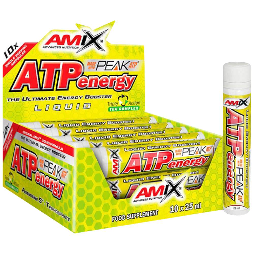 Amixtm ATP Energy Liquid е най-висококачествената енергийна формула разработена от Amixtm Nutrition и използвана от професионалисти. Съдържа Аденозин под формата на Аденозин 5’ –Дисодиев Трифосфат (Adenosine 5’-Triphosphate Disodium) (Пиков АТФ), до сега невиждана съставка в състезателните формули. Amixtm ATP Energy е подсилен с комплекс от Черен, Бял и Зелен чай, както и Безводен кофеин (Caffeine Anhydrous) за допълнителна ефикасност! Този единствен по рода си комплекс предоставя комбинация от мастно преработвателни съставки със супер антиоксидантна защита.