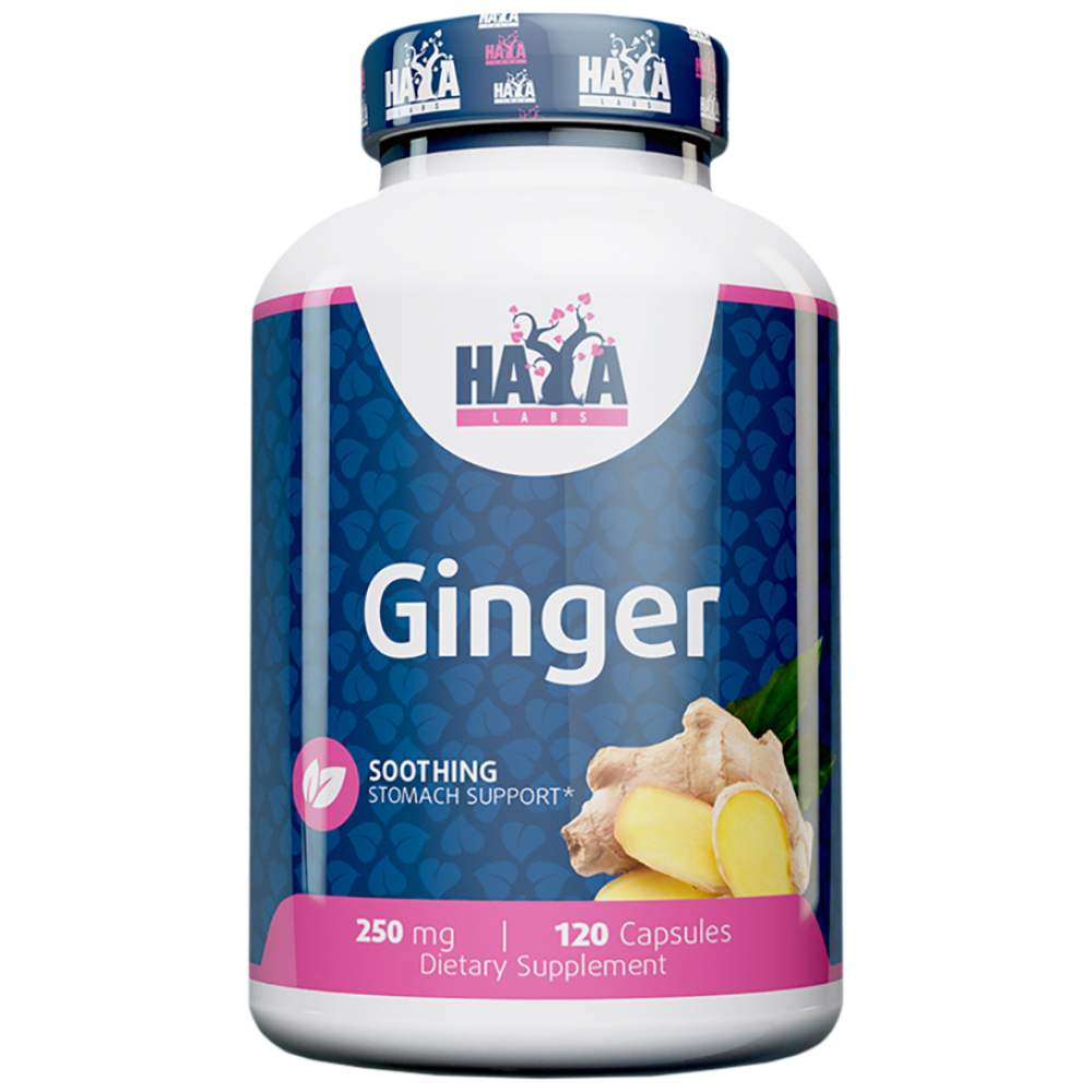 HAYA Labs Ginger - Джинджифилът (Ginger) се извлича от грудковото коренище (подземен корен) на многогодишното растение Zingiber officinale. Той вероятно е един от първите видове, култивирани от човека; използван е в Азия от поне 5000 години. Древните гърци прилагали растението за облекчаване на храносмилането като дори го прибавяли към хляба; това представлявал и първият джинджифилов хляб. Растението е едно от най-добре познатите народни средства за лечение на стомашни разстройства, лошо храносмилане, крампи и простуди. Джинджифилът (Ginger) действа като антиспазмолитик, увеличавайки перисталтиката, в добавка към стимулиране отделянето на стомашен сок и подпомагане изхвърлянето на газове от червата. Последните проучвания сочат за възможна употреба при поддържане на сърдечносъдово здраве. Други проучвания показват, че може да бъде използван за подпомагане на здрава ставна функция, подобно на начинът, по който се използва в медицината Аюрведа. Двойно-сляпо изследване, проведено в Англия открива, че джинджифилът е по-ефективен в облекчаване на гадене и морска болест в сравнение с фармацевтичните продукти. Активната съставка в растението е джинджерол, която представлява олеорезин, придаваща неговия аромат и терапевтични свойства. Използваната част е коренът.