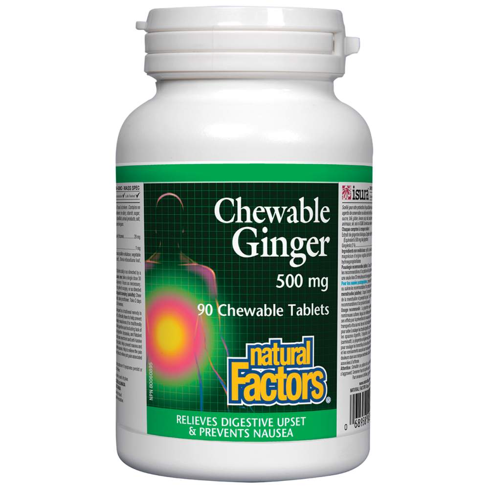 Natural Factors Chewable Ginger 500 mg предлага ефективно и вкусно решение за облекчаване на различни храносмилателни и здравословни проблеми. Този продукт идва в удобни дъвчащи таблетки, които съчетават традиционната сила на корен джинджифил с модерна формулация за максимално удобство и ефективност. Джинджифилът е ценен в много култури за своите лечебни свойства, особено за подпомагане на храносмилането и облекчаване на гадене. Тези дъвчащи таблетки са създадени без изкуствени цвета, аромати или консерванти, без глутен, без ГМО и са подходящи за вегани, което ги прави идеален избор за всеки, който търси природни решения за здравето си.