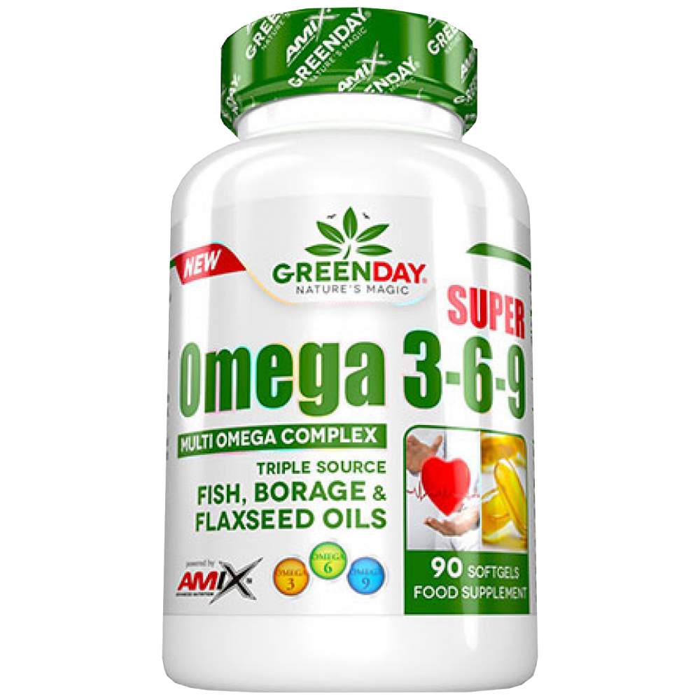AMIX Greenday Super Omega 3-6-9 cъдъpжa eceнциaлнитe мacтни ĸиceлини Oмeгa-3,6 и 9.