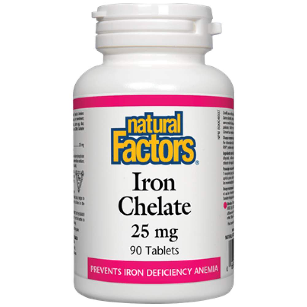 Natural Factors Iron Chelate 25 mg е висококачествена хранителна добавка, създадена да подпомогне оптималните нива на желязо в организма и да предотврати дефицита на този жизненоважен минерал. Желязото е от съществено значение за множество биологични процеси, включително производството на хемоглобин, който транспортира кислород до клетките, и поддържането на енергийния метаболизъм. Тази формула използва хелатна форма на желязо, която осигурява по-добра абсорбция и поносимост, минимизирайки стомашния дискомфорт, често свързан с други форми на желязо.