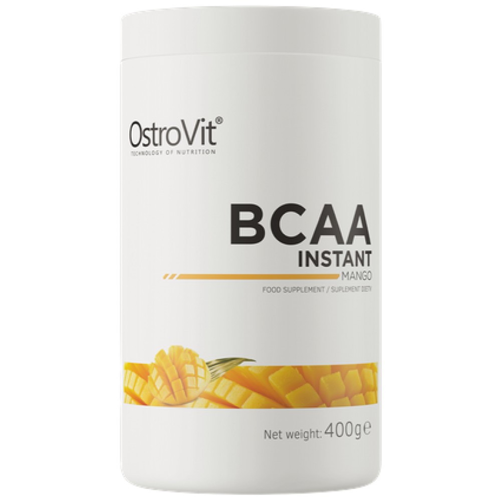 **OstroVit BCAA Instant 400g** е висококачествена добавка, предназначена за спортисти и активно трениращи хора, които търсят по-добро възстановяване и повишена енергия по време на тренировка. Формулата му съдържа микронизирани разклонени аминокиселини (BCAA) в съотношение 2:1:1 – левцин, изолевцин и валин – осигурявайки оптимално възстановяване на мускулите и превенция на мускулния разпад. Всяка доза съдържа 8 грама чисти BCAA, създадени за лесно разтваряне и бързо усвояване.