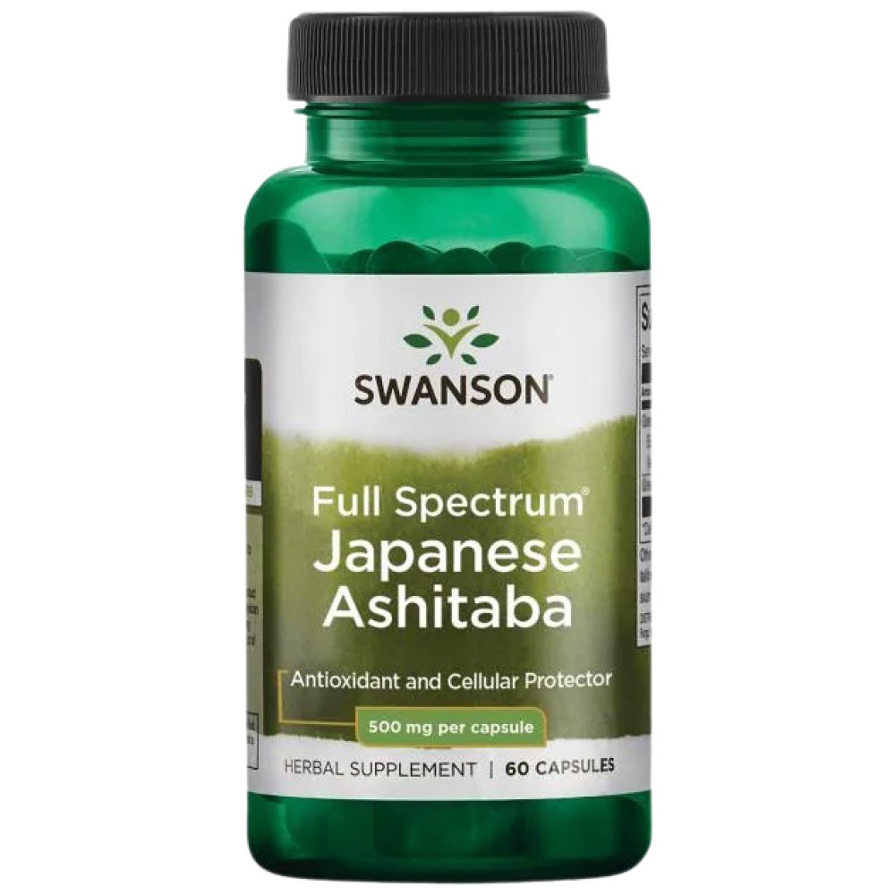 Пълен Спектър Японска Ашитаба на SWANSON е хранителна добавка, предоставяща ви 500 мг от билката във всяка капсула, съхраняваща всички полезни вещества, съдържащи се в нея. Билката е с невероятни антиоксидантни и детоксикиращи свойства и е позната и ползвана от азиатските лечители преди повече от 2000 години. В наши дни все повече проучвания се правят за ползите от билката и е установено, че тя има мощно антиоксидантно действие и увеличава продължителността на живот. Задържането на токсини във вашето тяло води до смущения в работата на черния дроб и бъбреците, както и в цялостното функциониране на организма. Това от своя страна води до намалена активност, отпадналост и редица болестни състояния. Научно доказано е, че Ашитаба е най-силният антиоксидант, има детоксикиращи свойства, отстранява токсините от тялото и предпазва и възстановява нервните клетки от разрушение. Ашитаба е билка, съдържаща 11 витамина (включително Бета-каротин, витамин Ц, Витамин Б12), над 13 минерала, хлорофил, ензими, протеини, сапонини, гликозиди, германий, растителни влакна, кумарини и флавоноиди. Благодарение на всичко това, което съдържа тя е всеобщо призната за СУПЕР ХРАНА и е подходяща и препоръчана за прием както при наличието на смущения в работата на организма (по-специално в работата на нервната система, черния дроб и бъбреците) в следствие на задържане на токсини, така и за повишаване жизнения тонус, поддържане здравето на нервните клетки, осигуряване на чисто от токсини тяло и увеличаване продължителността на живот.