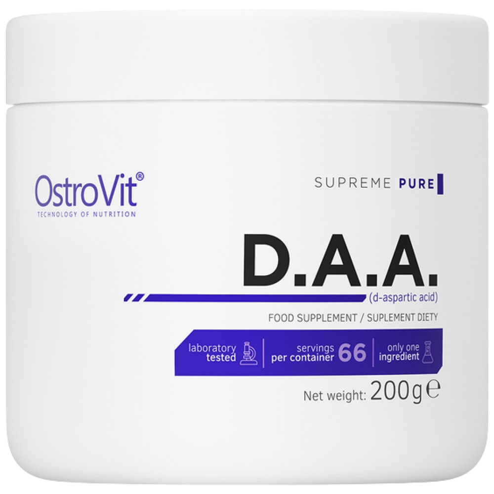 **OstroVit 100% D.A.A.** предоставя 100% чиста D-аспарагинова киселина, подложена на процес на микронизация, което гарантира по-добра разтворимост и усвояемост от организма. Продуктът е в прахообразна форма с натурален вкус, което улеснява смесването му с вода или други напитки.