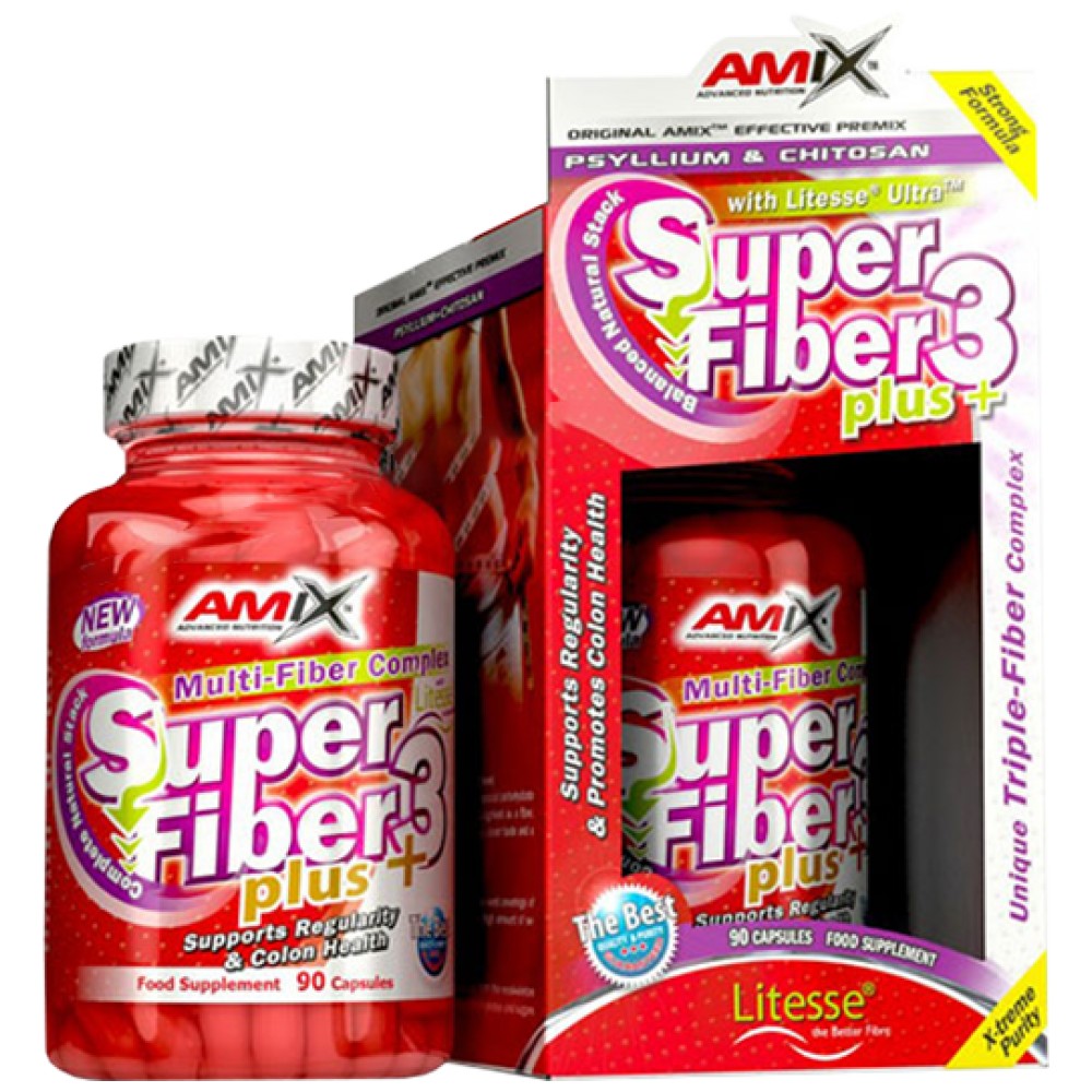 Amix Super Fiber3 Plus е първокласен изцяло природен комплекс от фибри, съставен от растителни (Psillium Husk), животински (хитозан- извлечен от черупки на ракообразни) и пробиотични влакна (Litesse ® Ultra), за да подпомага отделянето на токсините от организма и да се запази храносмилателната система в добро състояние.