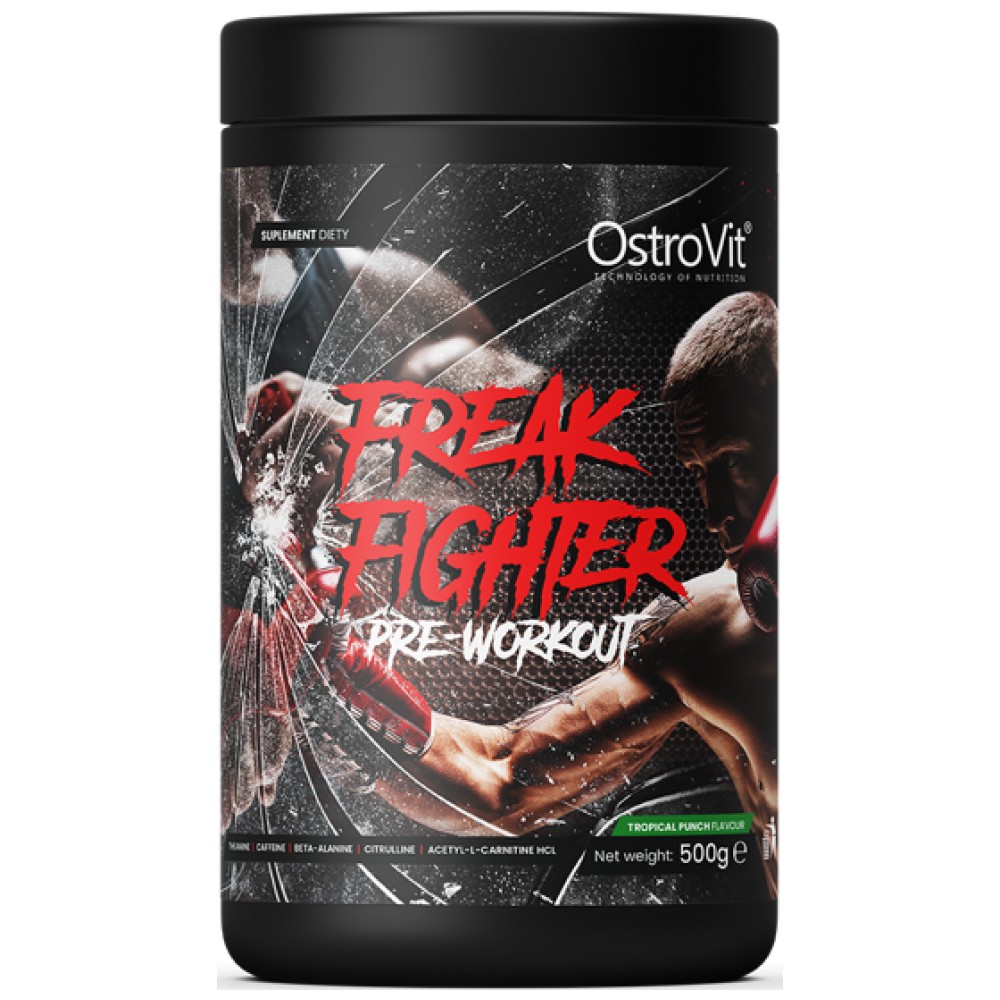 OstroVit Freak Fighter е висококачествена предтренировъчна добавка на прах, създадена да повиши вашата енергия, издръжливост и фокус по време на интензивни тренировки. Със своя освежаващ тропически вкус, този продукт комбинира внимателно подбрани активни съставки, които работят синергично за подобряване на вашите спортни постижения.