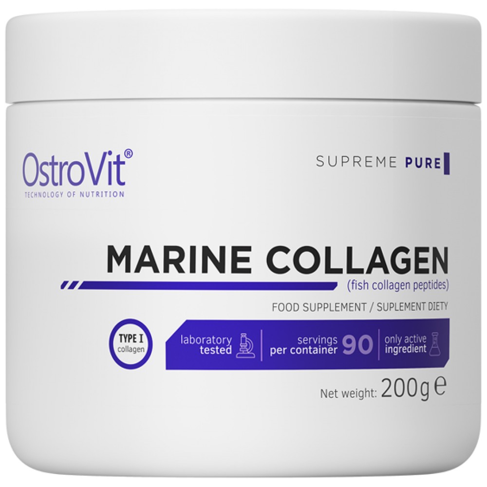OstroVit Marine Collagen Hydrolyzed Fish Collagen Powder е висококачествена хранителна добавка, създадена за цялостна грижа за здравето и красотата. Този продукт съдържа хидролизиран колаген от рибен произход – една от най-ефективните форми на колаген, известна със своето бързо усвояване и доказани ползи за организма. Колагенът е основен структурен протеин, който поддържа здравето на ставите, кожата, косата и ноктите, като същевременно играе важна роля за еластичността и хидратацията на кожата.