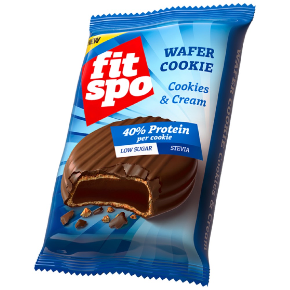 Новото попълнение в гамата на FitSpo се нарича Wafer Cookie и представлява вкусна и хрупкава протеинова бисквитка. FitSpo Wafer Cookie съдържа само 6.6 грама въглехидрати от които само 1.98 г са захар. Въпреки почти нулевото съдържание на захар, вкусът на FitSpo Wafer Cookie е неповторим като не липсва сладост, но благодарение на натуралния подсладител Stevia, това протеиново изкушение няма да наруши диетата Ви, както и няма да повиши рязко инсулиновите нива, което би могло да е предпоставка за натрупване на подкожни манини!