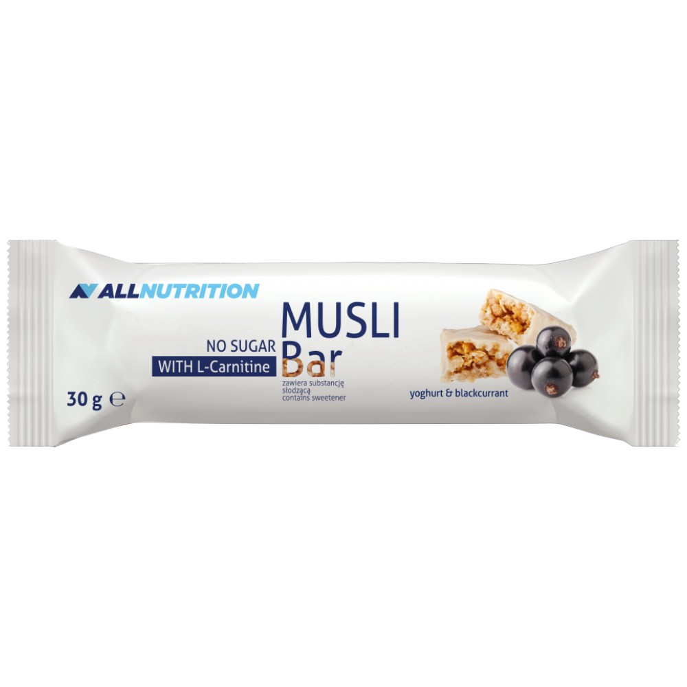 AllNutrition Muesli Bar with L-Carnitine е функционален мюсли бар, който комбинира комплекс от зърнени култури, ядки и плодове с добавен L-карнитин. Продуктът е създаден като практичен източник на енергия и хранителни вещества, подходящ за активни хора, спортуващи и всички, които търсят балансирана закуска или междинно хранене.
