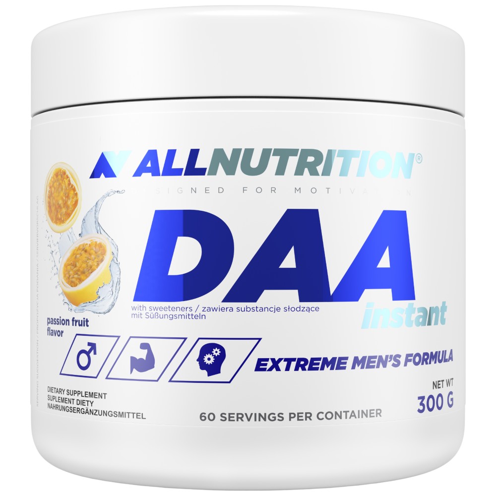 AllNutrition DAA е хранителна добавка под формата на прах със свободна форма D-аспарагинова киселина, обогатена с цинк и витамини B5 и B6. Формулата е предназначена за активно трениращи, които желаят да подкрепят физиологични процеси, свързани с хормоналния баланс и мускулната функция.