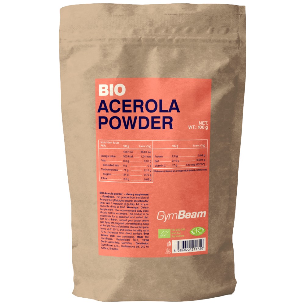 БИО Ацерола на прах се произвежда от сок от плодовете Ацерола (Malpighia glabra) с високо биологично качество. Ацерола е растение, по-точно дърво, с червени плодове, наподобяващи череши. Той се счита за суперхрана и е изключителен с високото си съдържание на витамин С.