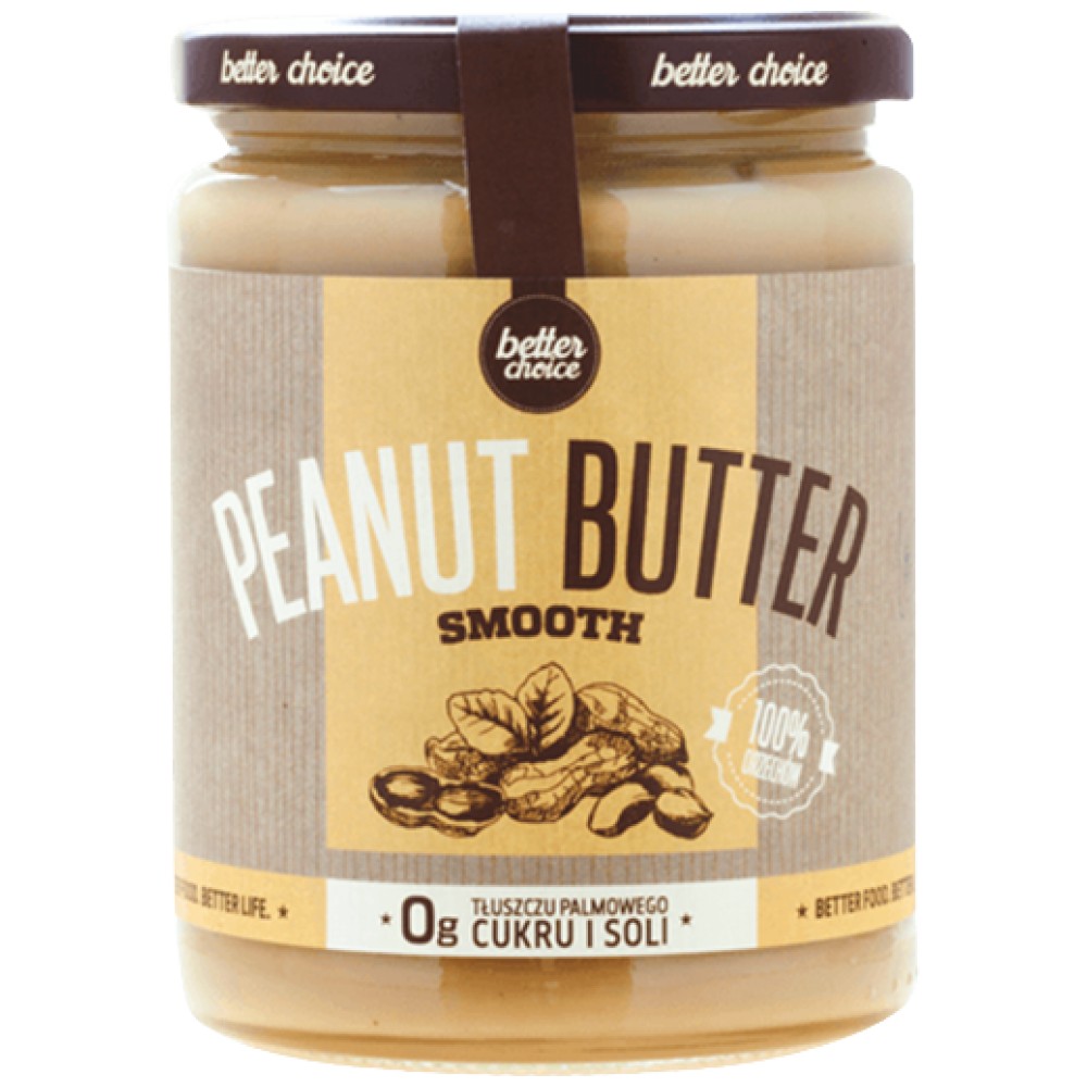 Гладко фъстъчено масло е натурално масло, произведено от 100% фъстъци. Продуктът не съдържа добавена сол, захар или палмово масло. ПО-ДОБЪР ИЗБОР ФЪСТЪКВЕНО МАСЛО SMOOTH има гладка, кремообразна консистенция и отличен вкус, благодарение на внимателния процес на печене и многочасово смилане. ПО-ДОБЪР ИЗБОР ФЪСТЪЧЕНО МАСЛО SMOOTH е 100% натурален продукт и може да образува слоеве. Ако забележите мазен слой върху маслото, просто го разбъркайте отново, преди да консумирате.