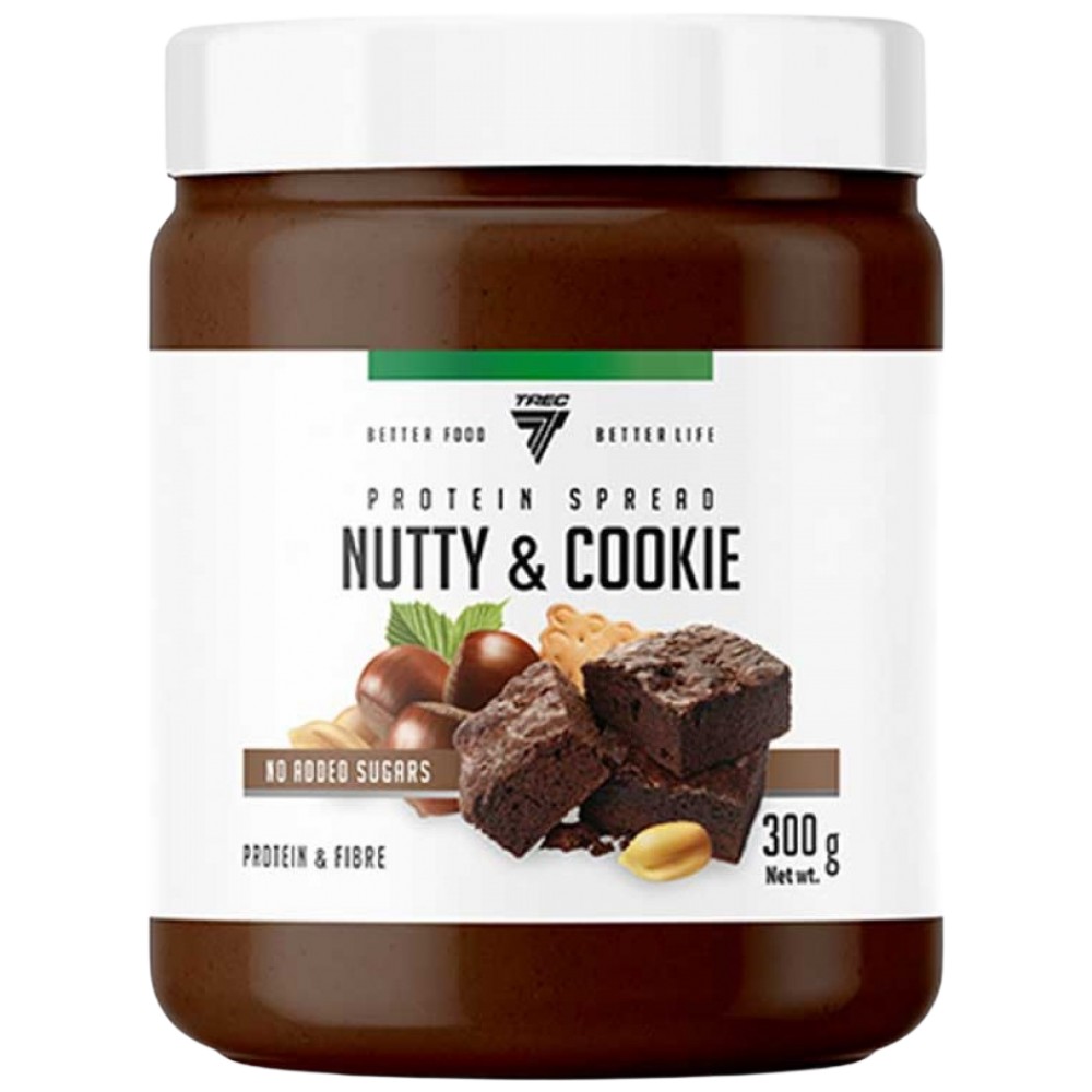Trec Protein Spread Nut & Cookie е протеинова мазнина, направена от фъстъци с добавка на лешници, сладки сладки и какао.
