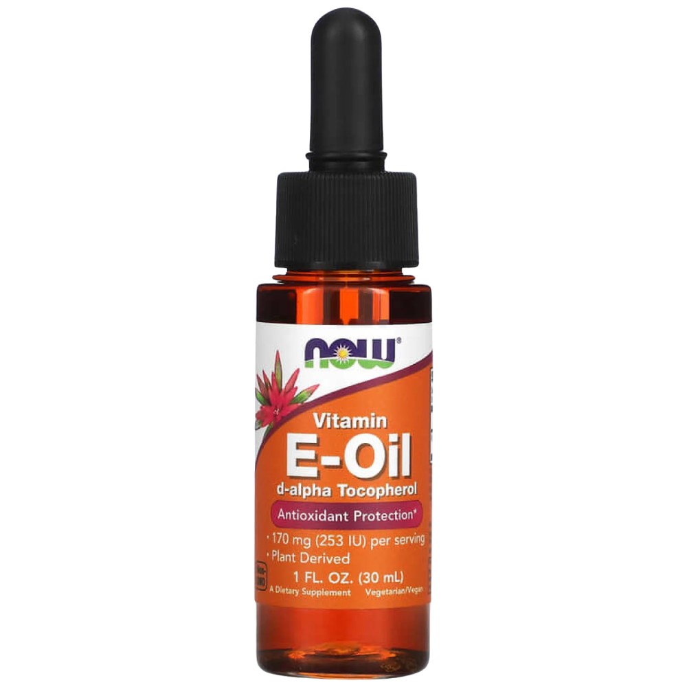 NOW Foods Витамин E Liquid е висококачествена хранителна добавка, предназначена да осигури мощна антиоксидантна защита и да подпомогне общото здраве и благополучие. Този продукт съдържа естествен витамин E под формата на d-алфа токоферол, извлечен от растителни източници, което го прави подходящ за вегетарианци и вегани. Витамин E е мастноразтворим антиоксидант, който играе ключова роля в неутрализирането на свободните радикали и предпазва клетките от оксидативен стрес. Продуктът е в течна форма, което улеснява прецизното дозиране и позволява лесно добавяне към храни или напитки.