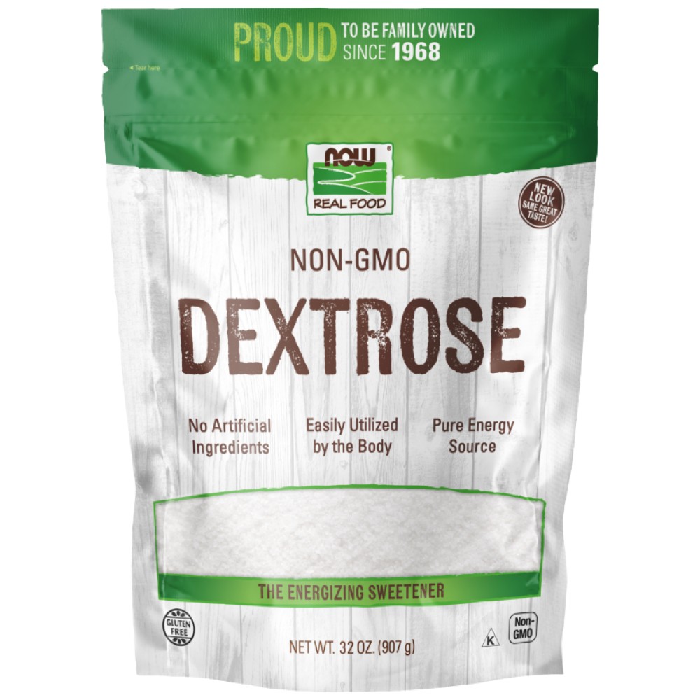 NOW® Real Food Dextrose е естествен подсладител с фина текстура и умерена сладост, извлечен от не-ГМО царевица. Декстрозата, известна още като глюкоза, е прост захарид, който играе съществена роля в клетъчното енергийно производство и е основният източник на енергия за повечето живи организми.