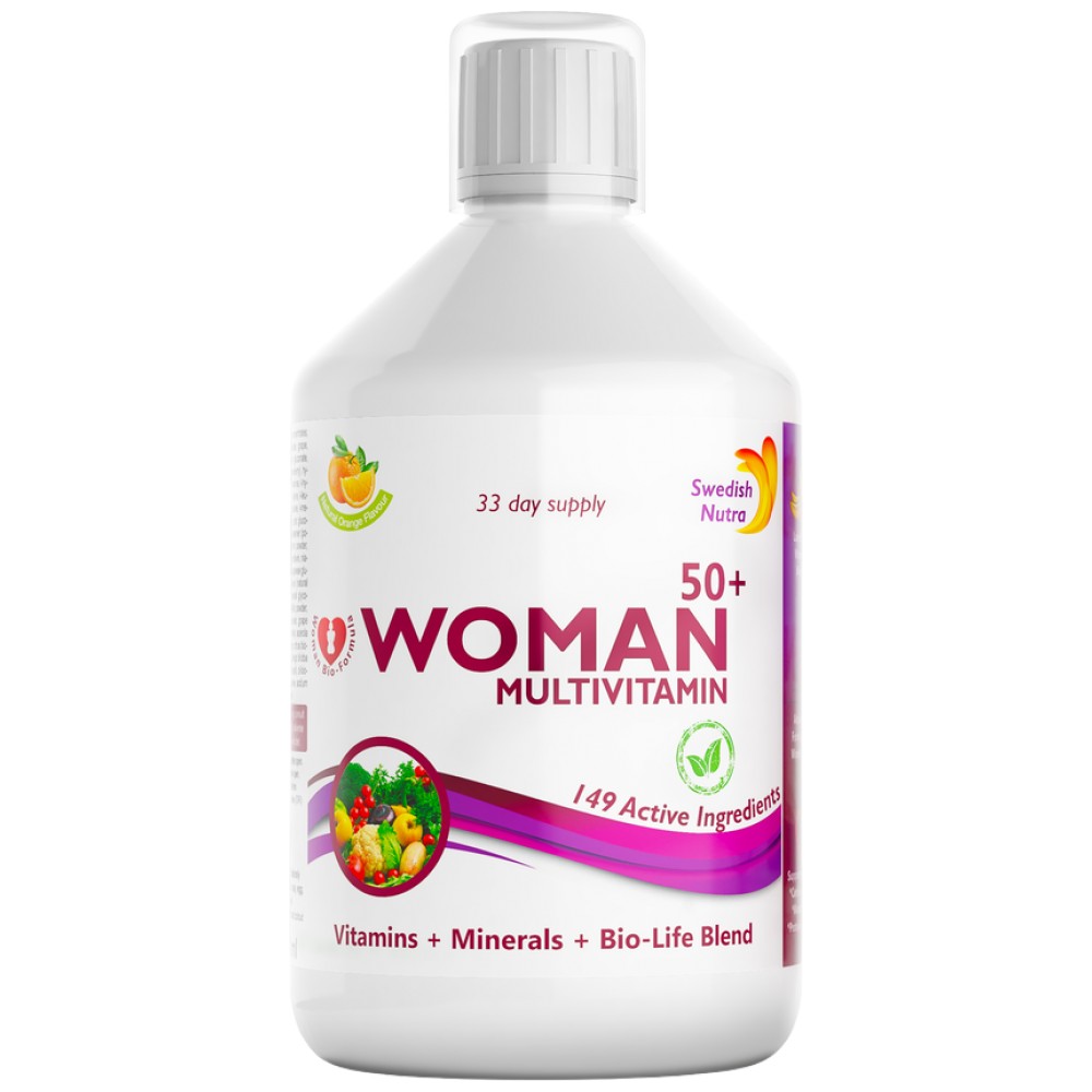 След 50 годишна възраст, тялото ви се нуждае от повече хранителни вещества и витамини. Специално разработените в Швеция витамини за жени, допринасят за здравословен метаболизъм, повече енергия и издръжливост, и по-добра мозъчна функция. Мултивитамините Women 50+ съдържат всички необходими хранителни вещества за задоволяване на дневните нужди на организма. Богатия състав на витамини, минерали и специално патентована формула от билки подсилва цялото тяло и имунна система!