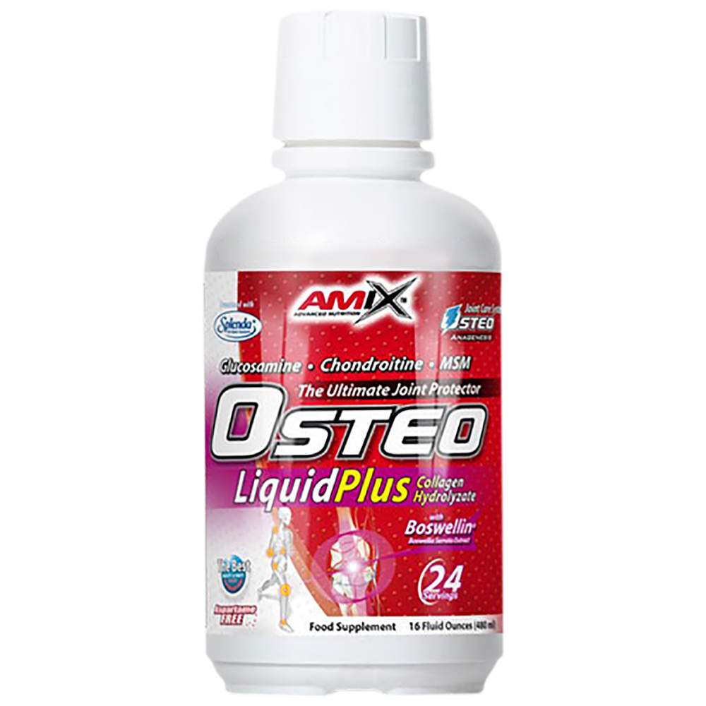Amix Osteo Liquid Plus е създаденс комбинацияот синергични съставки като колаген хидролизат, глюкозамин сулфат, хондроитин сулфат, както и други допълнителни хранителни вещества като MSM (метилсулфонилметан), екстракт от Босвелия серата (Boswellin ®) и глицин.