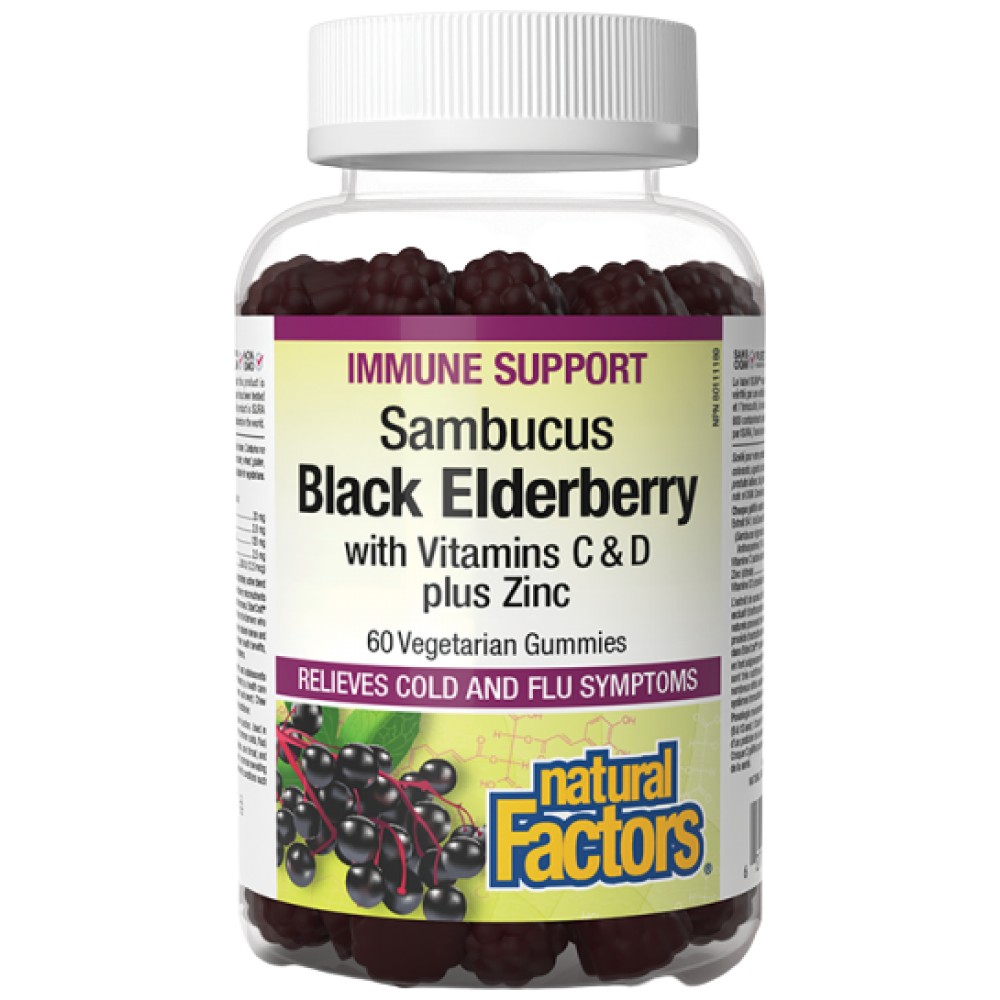 Natural Factors Black Elderberry with Vitamins C & D plus Zinc е формулиран специално за поддръжката на здравословната отбрана на децата. Този продукт съчетава силата на черния бъз с есенциалните витамини C и D и цинк, за да предложи всеобхватна подкрепа за имунната система. Представен в удобни желирани таблетки, които са не само ефективни, но и вкусни за децата, този продукт е идеален за всекидневна употреба. Черният бъз е известен с антиоксидантните си свойства и поддръжката на имунната функция, докато витамин C и D заедно с цинкът работят синергично, за да подпомогнат естествените защитни механизми на организма. Това прави Black Elderberry не само превентивна мярка, но и помощ при сезоните на простуди и грип.