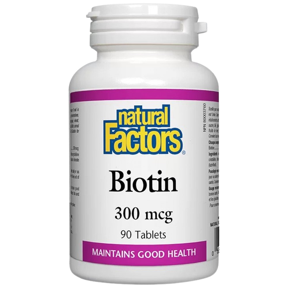 Natural Factors Biotin 300 mcg е вашето естествено решение за здрави коси, кожа и нокти. Този продукт съдържа биотин, известен още като витамин B7, който е жизнено важен за много метаболични процеси в организма. Капсулите са формулирани, за да са лесно усвояеми, предоставяйки оптимално количество биотин за поддръжка на клетъчния растеж, синтеза на бялък и здравословното състояние на клетките. Биотинът е водоразтворим витамин, което означава, че тялото не го запазва дълго, правейки редовната употреба необходима. Този продукт е без ГМО, без глутен и без изкуствени добавки, което го прави идеален за хора, които търсят чисти, природни здравни добавки.