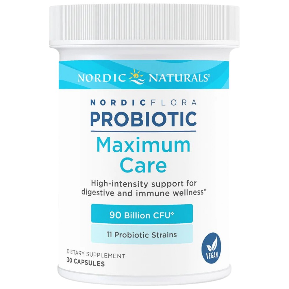 Формулиран за високоинтензивна подкрепа на стомашно-чревния тракт и имунната система, Nordic Flora Probiotic Maximum Care | 90 Billion Active Cells доставя 11 научноизследователски щама с 90 милиарда култури само в една капсула.