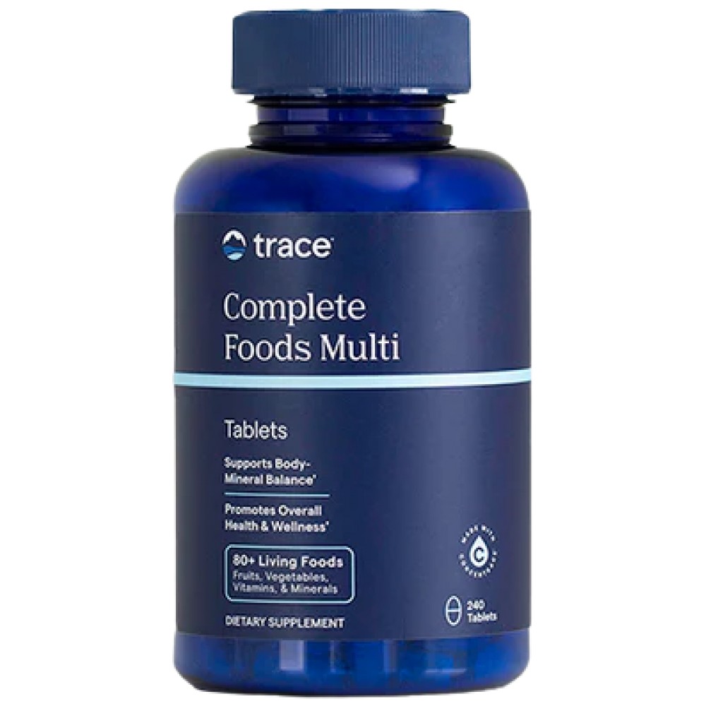 Приемането на Complete Foods Multi е като приемането на силно смути, но в удобна таблетирана форма. Complete Foods Multi е пълен с над 80 живи храни, йонни морски минерали от ConcenTrace, витамини и минерали. Специалният процес на Trace Minerals Research комбинира тези хранителни вещества със специална смес от морски минерали, която активира храните и хранителните вещества, така че да се усвояват и усвояват правилно. Тази подходяща съставка и процес осигуряват една от най-висококачествените всички натурални мулти-храни, мултивитамини и мулти-минерали.