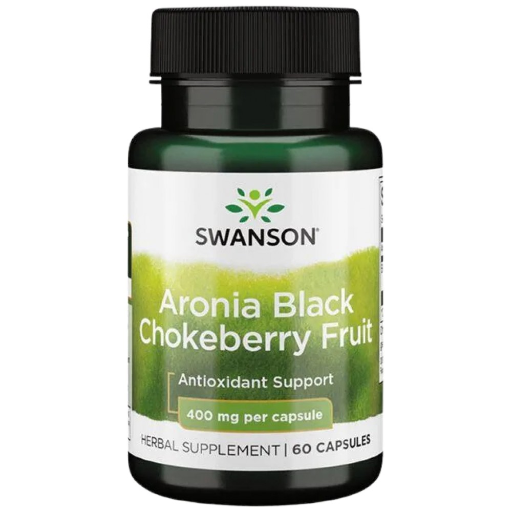 **Swanson Aronia Black Chokeberry Fruit 400 mg** предоставя 400 mg чист екстракт от плодовете на арония, като подпомага цялостното здравословно състояние и устойчивостта на организма срещу външни фактори.
