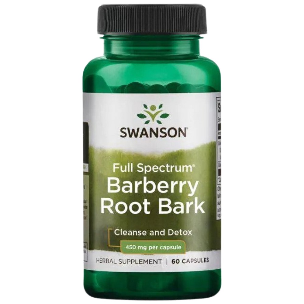 **Swanson Full Spectrum Barberry Root Bark 450 mg** е висококачествена хранителна добавка, съдържаща екстракт от кореновата кора на Берберис (Berberis vulgaris). Тази билка е известна със своите антимикробни, антиоксидантни и противовъзпалителни свойства, които подпомагат здравето на храносмилателната система, черния дроб и имунната система.