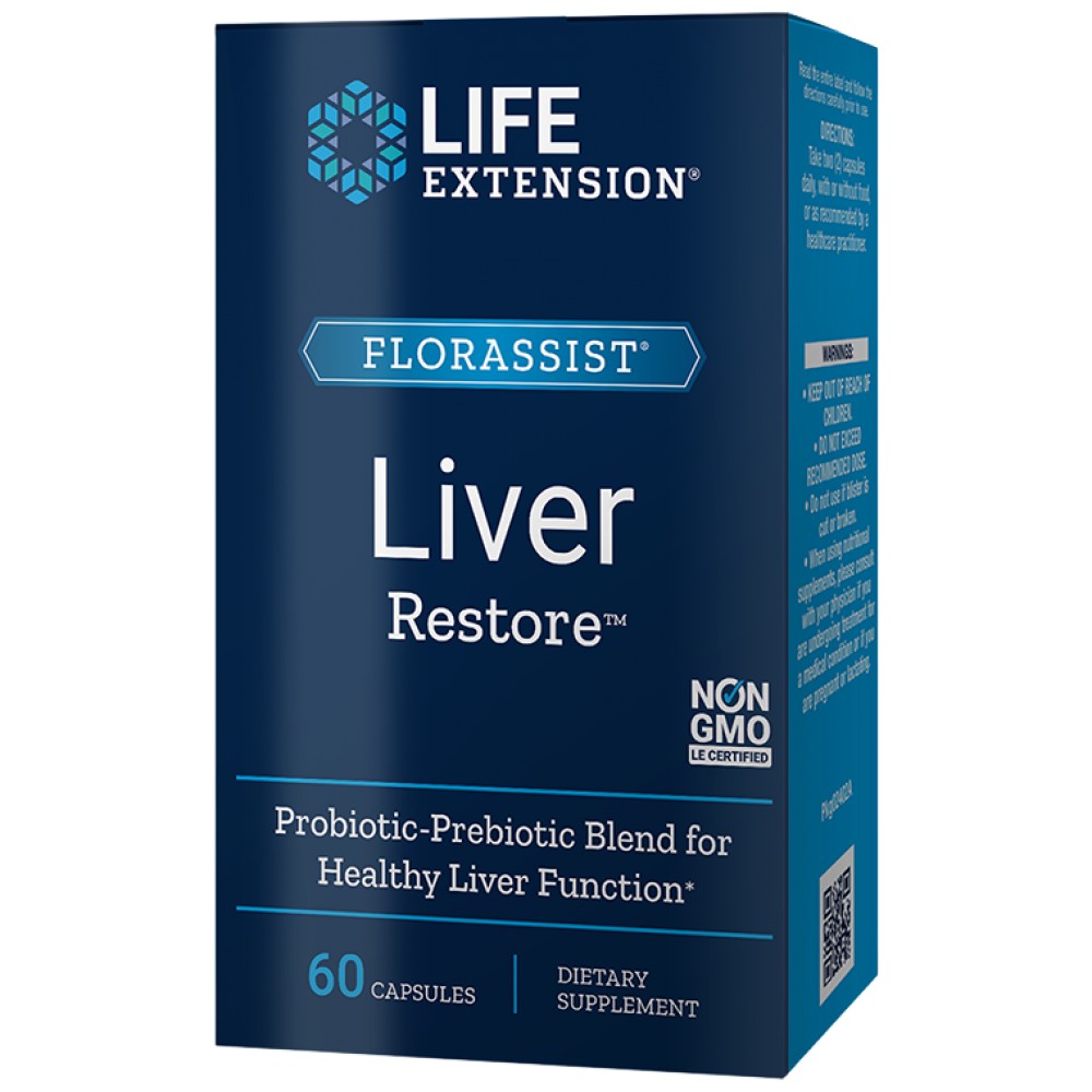 Пробиотиците са полезни бактерии, които оказват благоприятно въздействие върху цялостното здравословно състояние. Пребиотикът е хранително вещество, което насърчава растежа и осигурява жизнената активност на пробиотичните микроорганизми. FLORASSIST® Liver Restore e синбиотик - синергична комбинация от пробиотик и пребиотик, включващ седем специални пробиотични щама + растително базиран фруктоолигозахариден пребиотик.