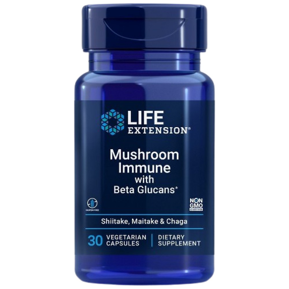 Продуктът Mushroom Immune на американската компания Life Extension осигурява цели сушени шийтаке, майтаке и чага на прах в съчетание с патентованата смес бета глюкани Wellmune® и е специално формулиран в подкрепа на здравословния, ефективен имунен отговор.