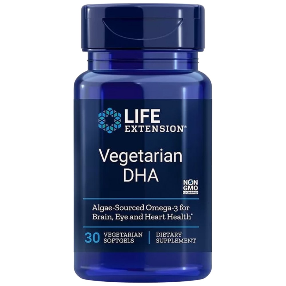 Докозахексаеновата киселина (DHA) е полиненаситена незаменима омега-3 мастна киселина. Тя представлява около 40% от полиненаситените мастни киселини в човешкия мозък. Играе решаваща роля в подпомагането на когнитивната функция и подобрява настроението. Изследванията обаче сочат, че хората, които спазват вегетарианска или веганска диета, често имат по-ниски нива от нея. Растителната DHA на LIFE Extension насърчава когнитивната функция, настроението и здравето на очите.