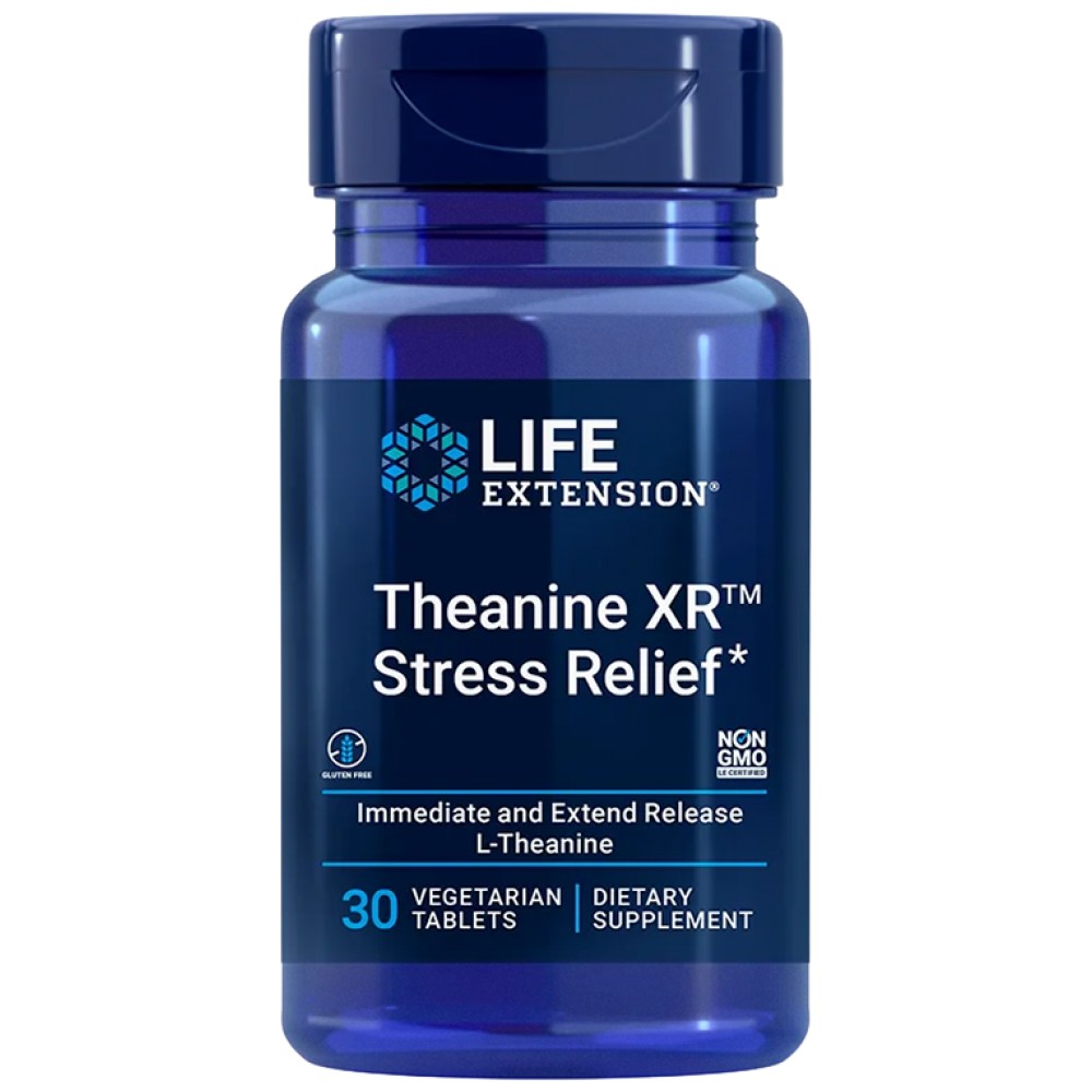 Theanine XR™ Stress Relief е висококачествен естествен продукт, който намалява стреса и безпокойството през целия ден. Съдържащата се в него аминокиселина L-theanine допринася за нормалната функция на нервната система, повлиява симптомите на тревожност и депресия и подобрява паметта и концентрацията. Препоръчва се за хора със забързано ежедневие, подложени както на психически, така и на физически стрес.