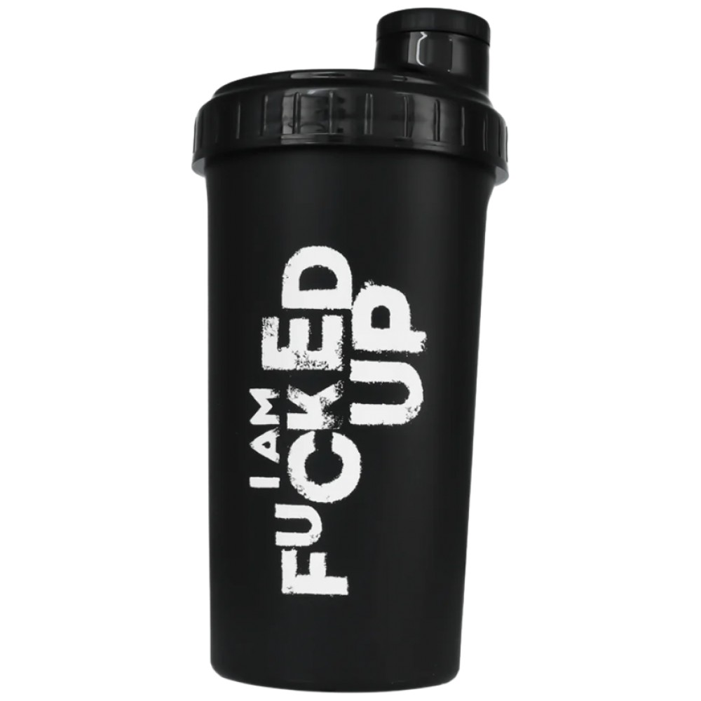 Шейкърът Fucked Up е изработен от черна пластмаса, която НЕ съдържа DEHP + BPA. За вашия протеинов шейк, вашата вода, вашия креатин и т.н., можете да използвате вашия шейкър за почти всичко. The Fucked Up Shaker е ваш постоянен спътник по време на тренировка или в движение, като ви позволява да носите най-важното със себе си! Шейкърът Fucked Up е напълно устойчив на течове и може да се мие в съдомиялна машина!