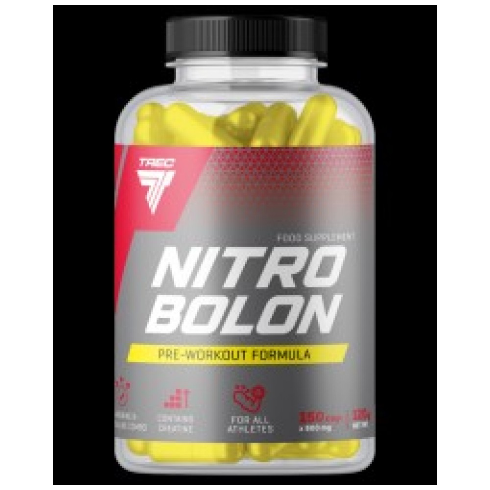 СЪСТАВКИ: NITROBOLON BLEND [L-аргинин малат; креатин етилов естер; цитрулин малат; L-аргинин алфа-кетоглутарат]; обвивка на капсулата (желатин; цвят – титанов диоксид); средство против слепване – магнезиеви соли на мастни киселини.