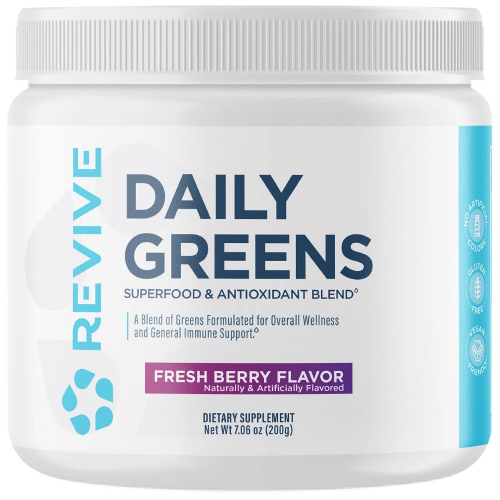 Употреба на Daily Greens : Вземете една (1) лъжица един до два пъти дневно. Препоръчваме да приемате с 1 капсула Revive Digest Aid, за да подпомогнете усвояването на големи количества зеленчуци