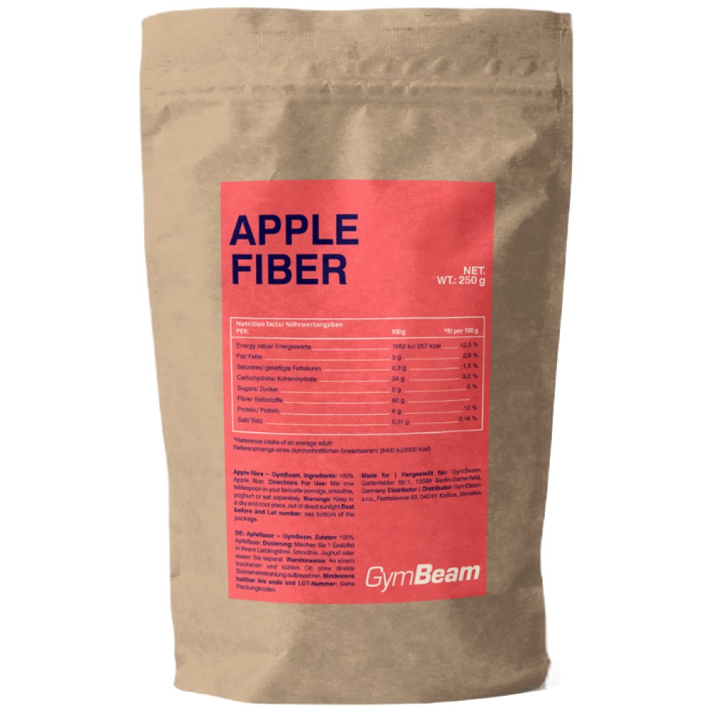 Ябълковите фибри са отлично допълнение към здравословното хранене. Това са разтворими фибри от висококачествени ябълки, които се свързват с грижата за доброто храносмилане или оптималния състав на чревната микрофлора. Влакнините действат като храна за здравословните чревни бактерии (пребиотик), които са от съществено значение за правилното функциониране на червата. Благодарение на високото съдържание на фибри, този продукт ще бъде оценен от всички хора, които търсят начин да заситят стомаха си, да предотвратят глада или да се борят с апетита за сладко. Разтворимите влакнини свързват водата, увеличават обема си и по този начин придобиват гелообразна консистенция. По този начин тя може да забави изпразването на стомаха, което може да бъде полезно например при опити за отслабване или, накратко, да запази по-дълго усещането за ситост.