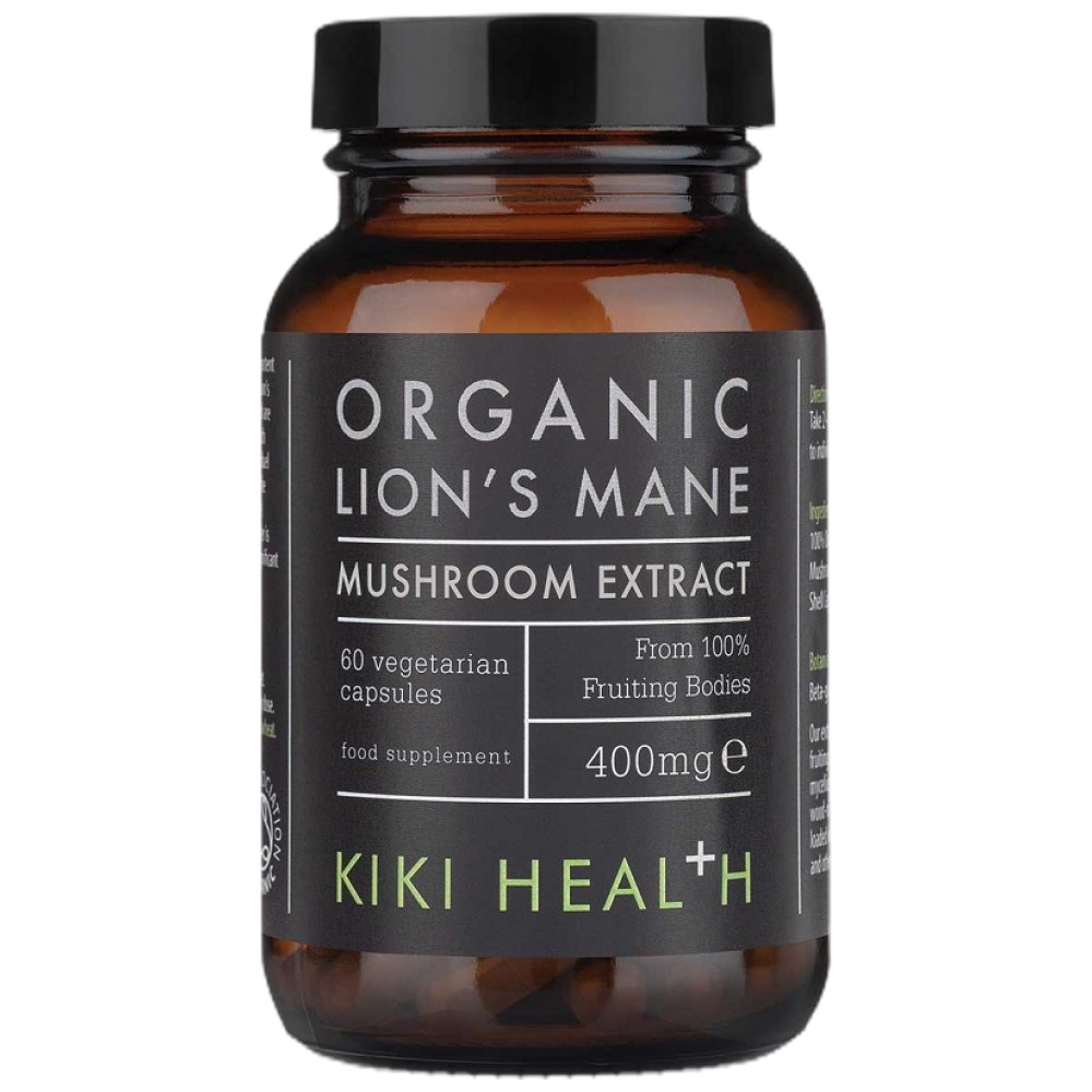 KIKI Health Lion’s Mane’s Extract Organic 400 mg е натурална хранителна добавка със стандартизиран органичен екстракт от гъбата Lion's Mane — популярна с потенциалните си ползи за мозъчната функция, концентрация, нервната система и общото здраве.
