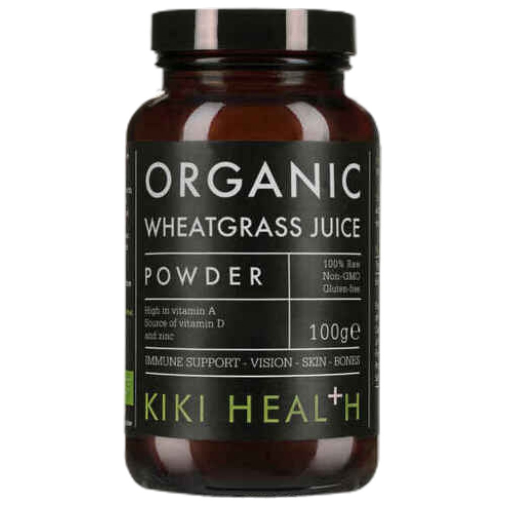 KIKI Health Organic Wheatgrass Juice Powder е висококачествена хранителна добавка, произведена от пресен сок от органична житна трева (Triticum aestivum), отглеждана на сертифицирани биоферми в Юта, САЩ. Сокът се извлича и изсушава чрез технологията BioActive Dehydration™, която запазва активните ензими, хлорофила и хранителните вещества без термична деградация. Този продукт не съдържа пълнители, неразтворими фибри, изкуствени оцветители или добавки.