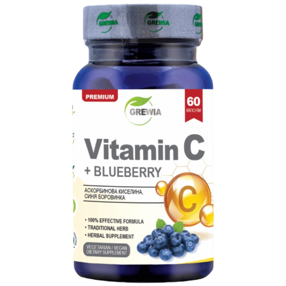 ВИТАМИН С + СИНЯ БОРОВИНКА е продукт с марката Grewia. Той представлява хранителна добавка в растителни/веган/ капсули, в чиято 100% иновативна и ефективна формула, в състав от високо стандартизираните Витамин С /99% Ascorbic acid/ и Синя Боровинка/Bilberry Extract 90%/, със основната цел, да благоприятстват и укрепят цялостно вашия организъм. Ползите от приема на тази комбинация са наистина много, като някои от най-важните са: – отличен имуностимулатор и силен антиоксидант, – извежда свободните радикали от тялото и по този начин не допуска образуването на недоброкачествени тумори, като въздейства върху организма на клетъчно ниво, – подпомага здравето на сърцето и понижава нивата на лошия холестерол, – подкрепя здравето на кожата, косата и ноктите, – понижава кръвното налягане, – намалява увреждането на ДНК, – забавя стареенето.