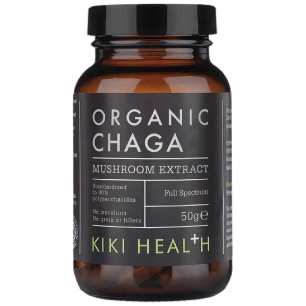 KIKI Health Chaga Extract Organic Powder е хранителна добавка от органичен екстракт на гъбата чага (Inonotus obliquus), известна в традиционната медицина като силен природен адаптоген и антиоксидант. Продуктът е концентриран прах, който може да се добавя към напитки или храна, за да подпомага имунитета, общото здраве и устойчивостта на организма.