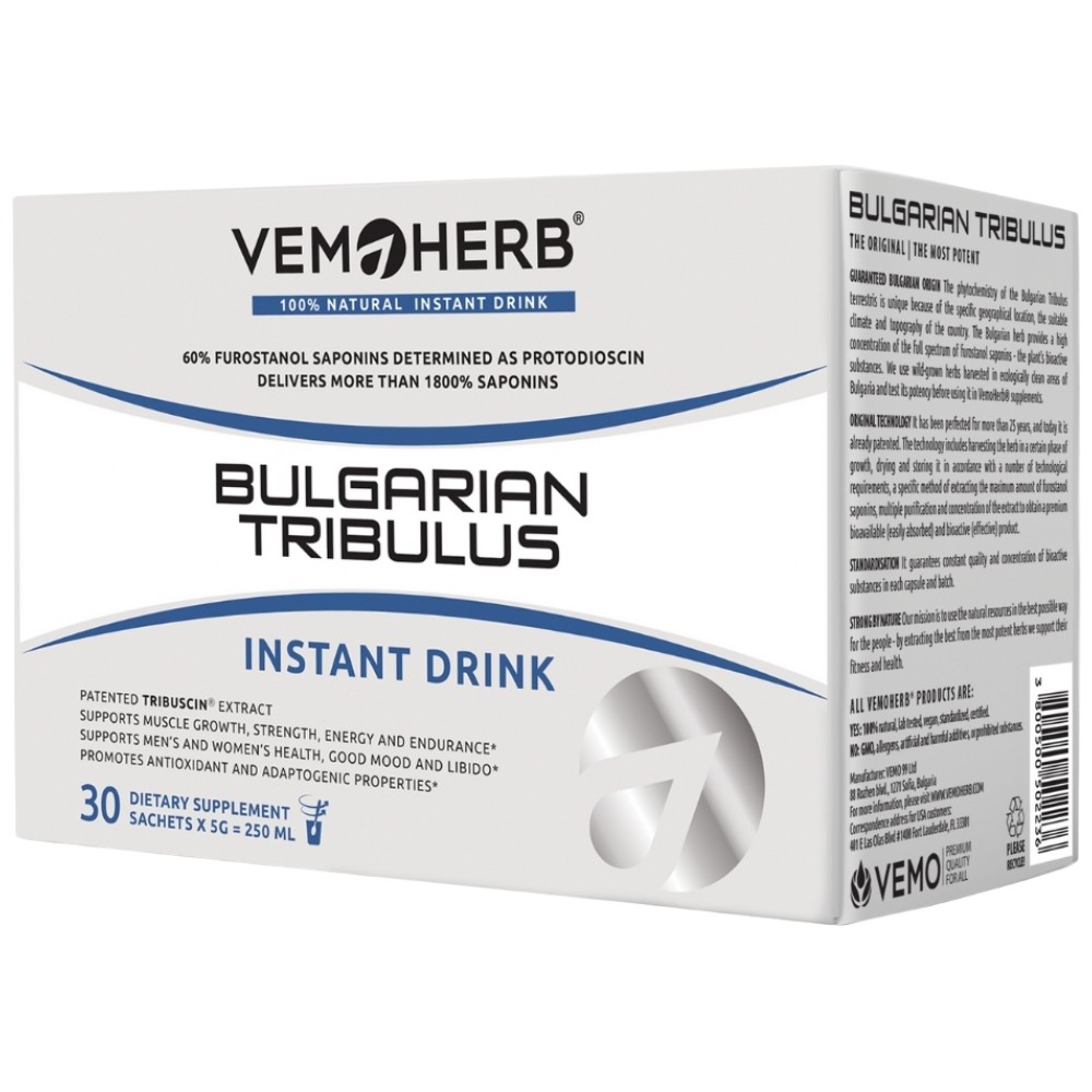 Разтворимата напитка ВемоХерб® Bulgarian Tribulus Drink съдържа екстракт от българската билка Трибулус (Tribulus terrestris). Тази билка е известна още с народните названия Бабини зъби, Кочи глави, Трабузан. Тя е добре позната в народната медицина и от векове се използва в българската култура като билка за жизненост, повишаване на енергията и либидото.
