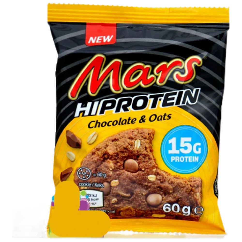 **Mars High Protein Cookie Chocolate & Oats** е съвършеното съчетание на вкус и хранителна стойност, създадено за активни хора, които не искат да правят компромис между удоволствието и постигането на целите си. Това е вашето тайно оръжие, когато става дума за бърз източник на протеини и енергия, представено в удобен и апетитен формат. С вдъхновен от оригиналните вкусове на Mars десерт, този продукт комбинира най-добрите съставки, за да ви предостави богат вкус на шоколад и овес, без да се отказвате от вашата фитнес цел.