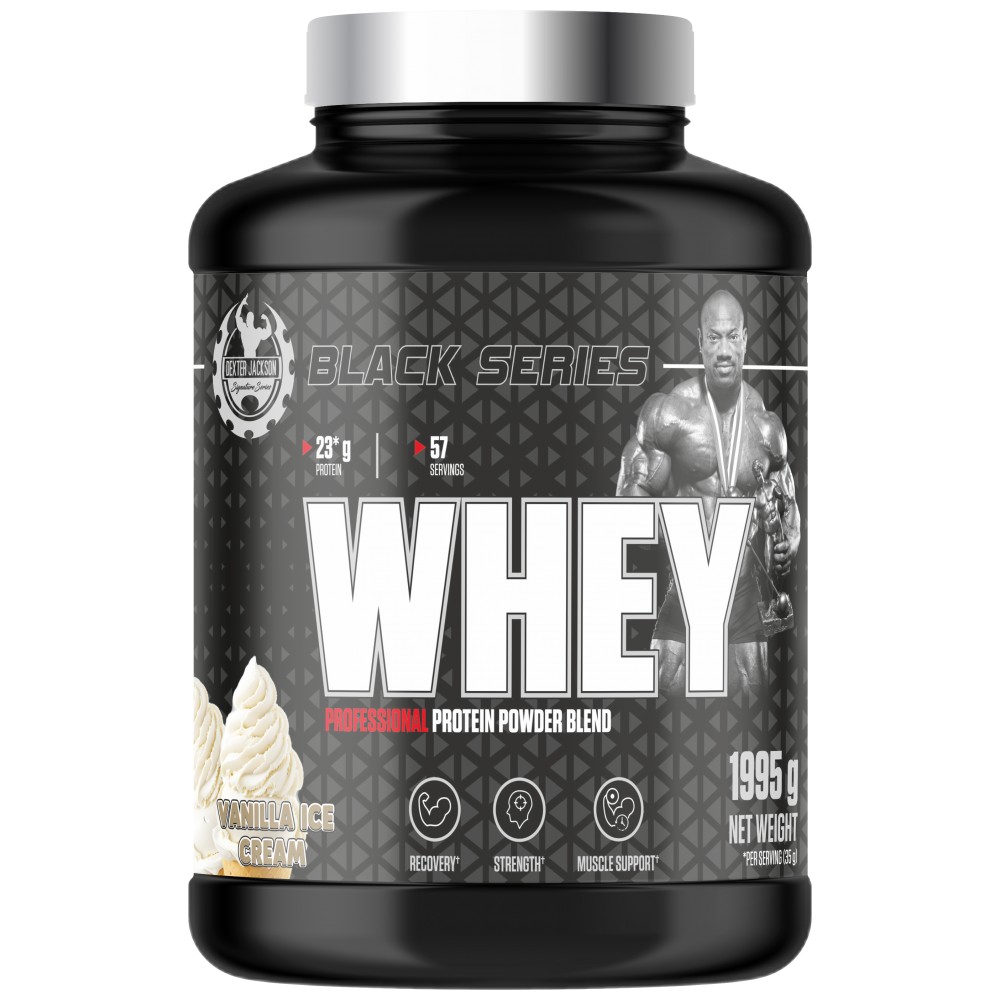 **Dexter Jackson Black Series Whey Protein** е иновативен протеинов продукт, създаден с изключително внимание към детайлите и нуждите на спортистите. Протеиновата формула е разработена от легендарния културист Dexter Jackson, чиято философия е насочена към предоставянето на върхово качество за максимални резултати. Този протеин е перфектният избор за всеки, който иска да изгражда мускулна маса, да се възстановява бързо след тренировки и да поддържа активен начин на живот.