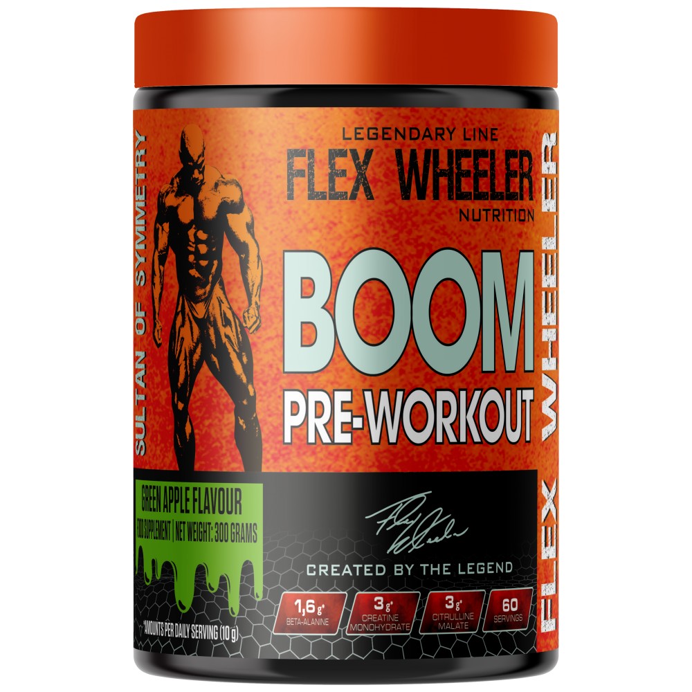 BOOM Pre-Workout Formula е част от Flex Wheeler Signature Series, марка, създадена от една от най-големите легенди в света на културизма, Flex Wheeler. Тази серия от добавки е предназначена да осигури максимални резултати за сериозни атлети и хора, които търсят интензивност и ефективност в своите тренировки.
