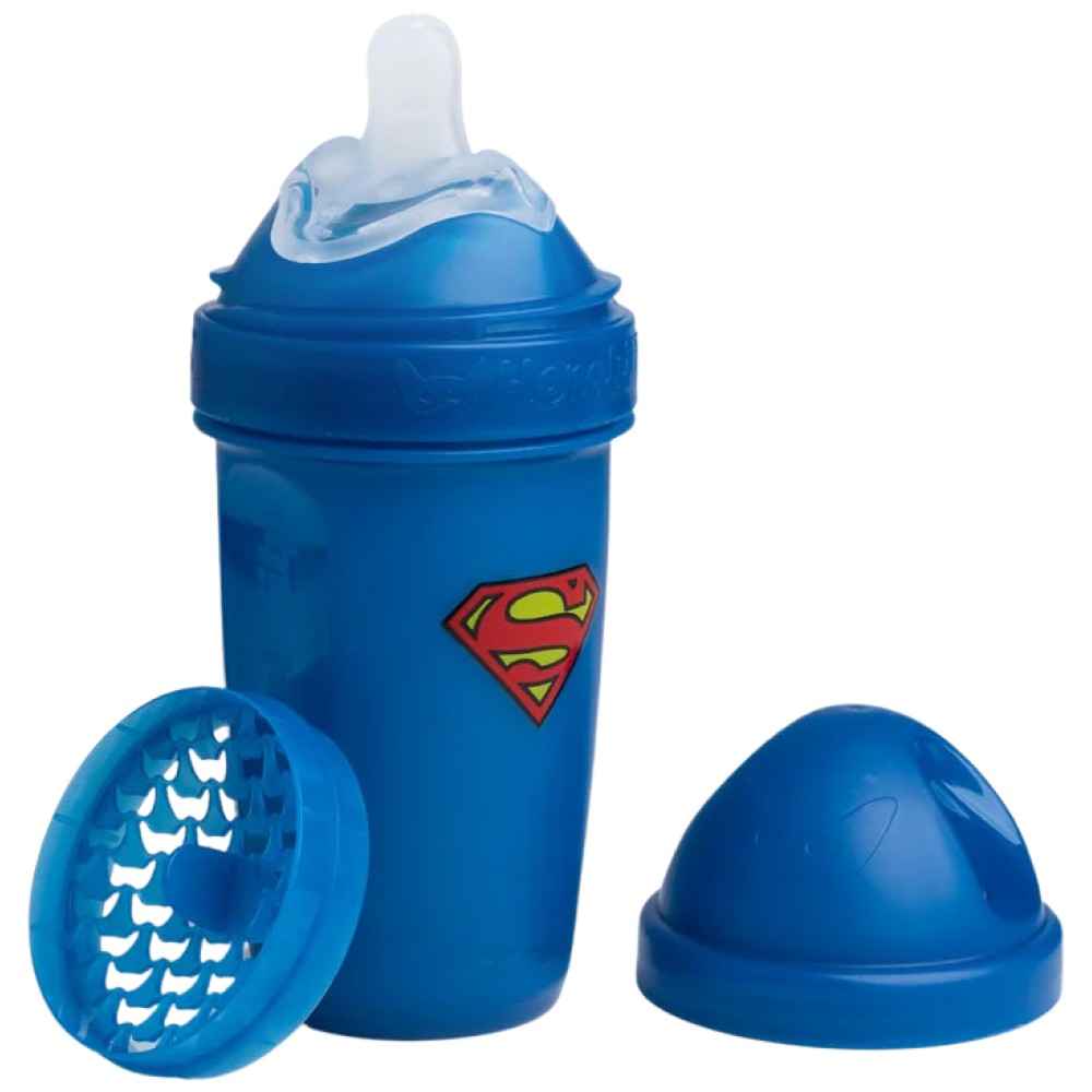 Бутилката Herobility Double Anti-Colic Baby Bottle Superman се откроява с двоен антиколик дизайн, който предлага по-добър контрол над въздушния поток. Двата клапана предотвратяват натрупването на въздух в бутилката, което предпазва бебето от дискомфорт. Биберончето е меко, с текстура, която наподобява естествената форма на гърдата, като предоставя на бебето познато усещане по време на хранене.