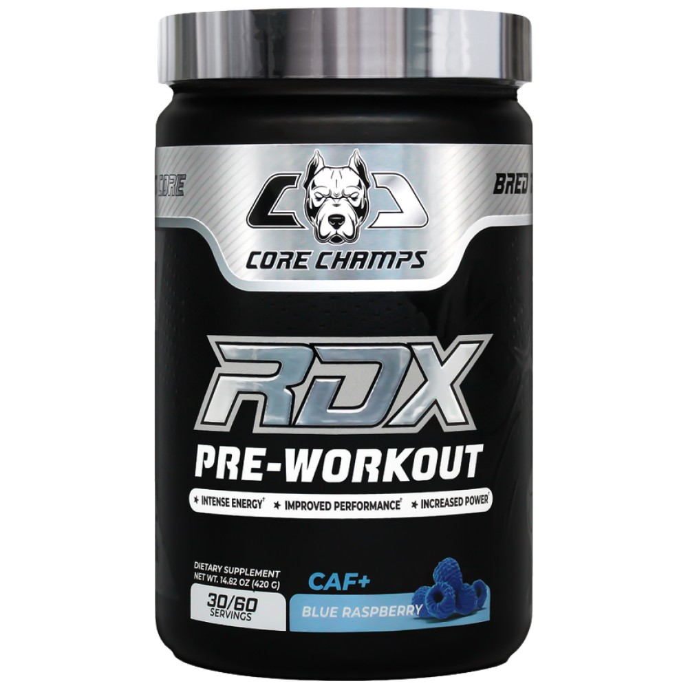 RDX Pre-Workout от Core Champs е мощен предтренировъчен стимулатор, създаден да изстреля вашите тренировки на ново ниво. Това е формула, специално разработена за всички, които искат да изпитат невероятен прилив на енергия, фокус и издръжливост по време на интензивни тренировки. Със силната си комбинация от активни съставки, RDX Pre-Workout ще ви помогне да се подготвите психически и физически за всяка тренировка, като ще увеличи продуктивността ви, както и способността ви да постигате по-добри резултати.