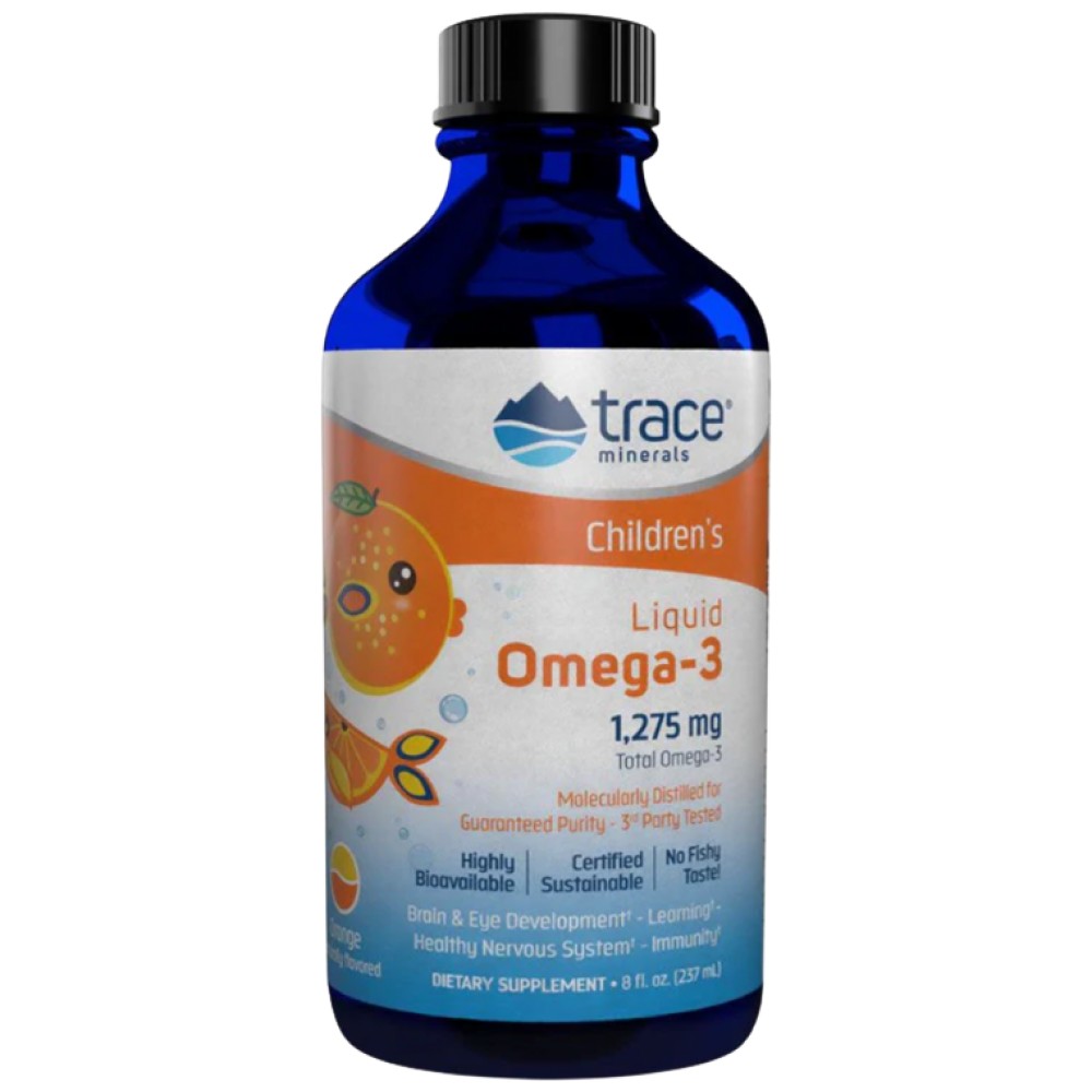 Trace Minerals Children’s Liquid Omega-3 е специално формулирана течна добавка, предназначена за деца, която осигурява жизненоважните омега-3 мастни киселини, необходими за здравословното развитие на мозъка, очите и нервната система. Съдържа EPA и DHA от чист рибен източник, които подпомагат когнитивните функции, концентрацията и цялостното здраве на детето. Течната формула с приятен вкус прави приемането лесно и удобно за малките деца, осигурявайки необходимите хранителни вещества за оптимален растеж и развитие.