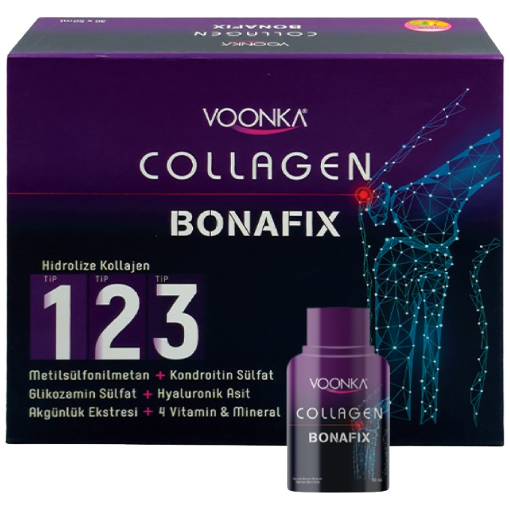 Voonka Collagen Bonafix Liquid осигурява бързоусвоима и високоефективна формула с 10,000 mg хидролизиран колаген и 40 mg неденатуриран колаген тип II – ключови съставки за здрави стави и хрущяли.
